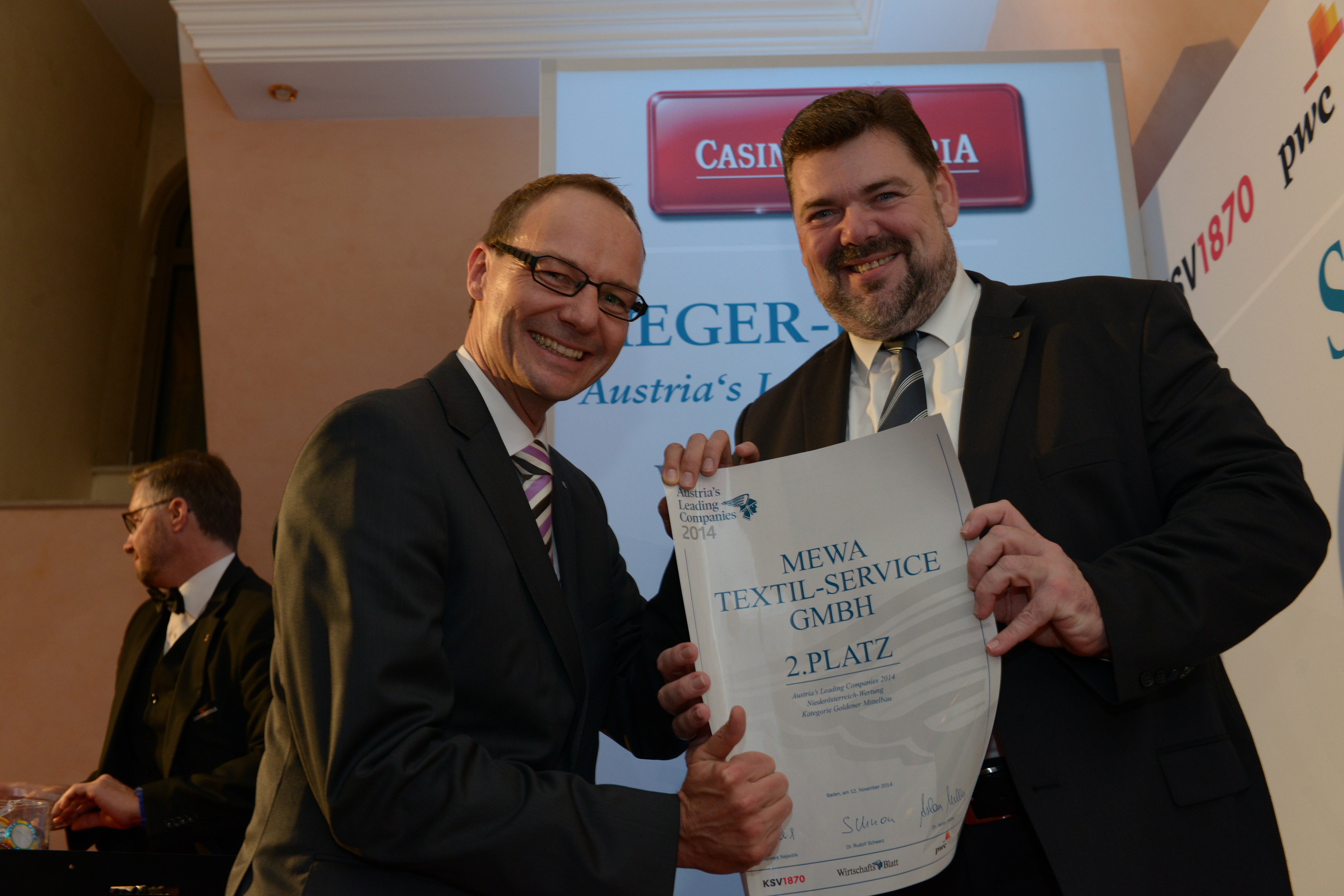 Im Rahmen einer feierlichen Award-Verleihung am 12. November 2014 zeigten sich Bernd Feketeföldi, kaufmännischer Geschäftsführer von MEWA Österreich, und Stefan Janzen, technischer Geschäftsführer von MEWA Österreich, sichtlich erfreut:„Wir sind sehr stolz, dass wir dieses Jahr mit dem zweiten Platz als erfolgreiches Mittelstandunternehmen ausgezeichnet wurden. MEWA ist ein Unternehmen mit über 100 Jahren Tradition, das schon immer wegweisend für die Branche war. Themen wie Umweltschutz, Mitarbeiterverantwortung, Corporate Social Responsibility und Nachhaltigkeit haben wir schon verfolgt, als das für die meisten Unternehmen nur Schlagwörter waren. Diese Auszeichnung beweist, dass wir vieles richtig machen.“