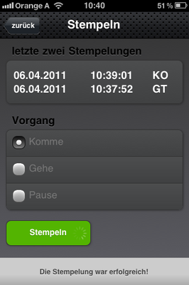 Zeitbuchungen vornehmen (Kommt – Geht – Pause)