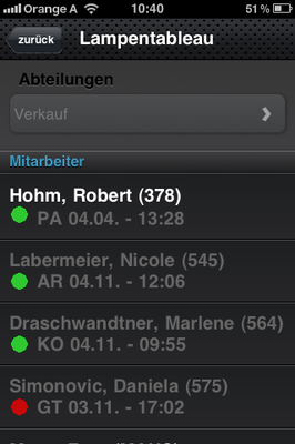im Lampentableau feststellen, wer gerade anwesend ist