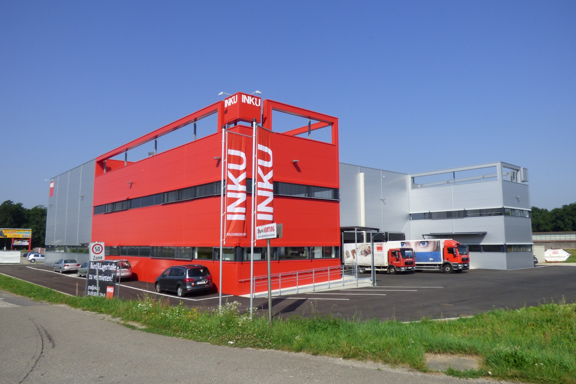 Am 11. September eröffneten JörgL. Jordan, Eigentümer der W. & L. Jordan GmbH, Kassel, und Herbert Seidl, Geschäftsführer der INKU Jordan GmbH & Co KG, sowie Verena Böhm, Niederlassungsleitung, offiziell die neue INKU Niederlassung in Unterpremstätten-Zettling. Über 100 Gäste aus dem INKU Kundenkreis sowie aus Politik, Wirtschaft und Sport folgten der Einladung, um den neuen Firmenstandort zu besichtigen.