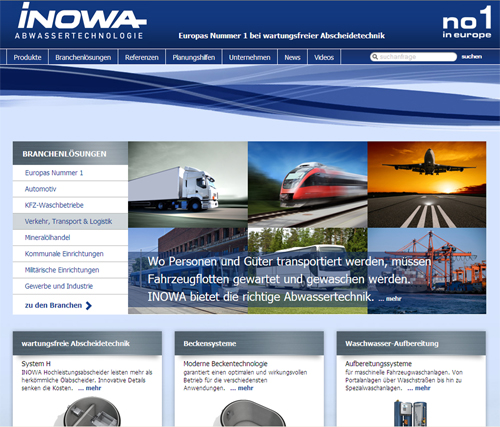Der Abwasserspezialist INOWA hat nun unter www.inowa.at seine neue Website in einem neuen Erscheinungsbild online gestellt. Nicht nur der optische Auftritt ist neu. Vor allem die Navigation wurde geändert, damit die Besucher schneller die gewünschte Information finden. Neben den reinen Produktinformationen können sich die Besucher im neuen Bereich "Branchenlösungen" auch über Abwassertechniklösungen in ihrem Bereich bzw. ihrer Branche informieren.