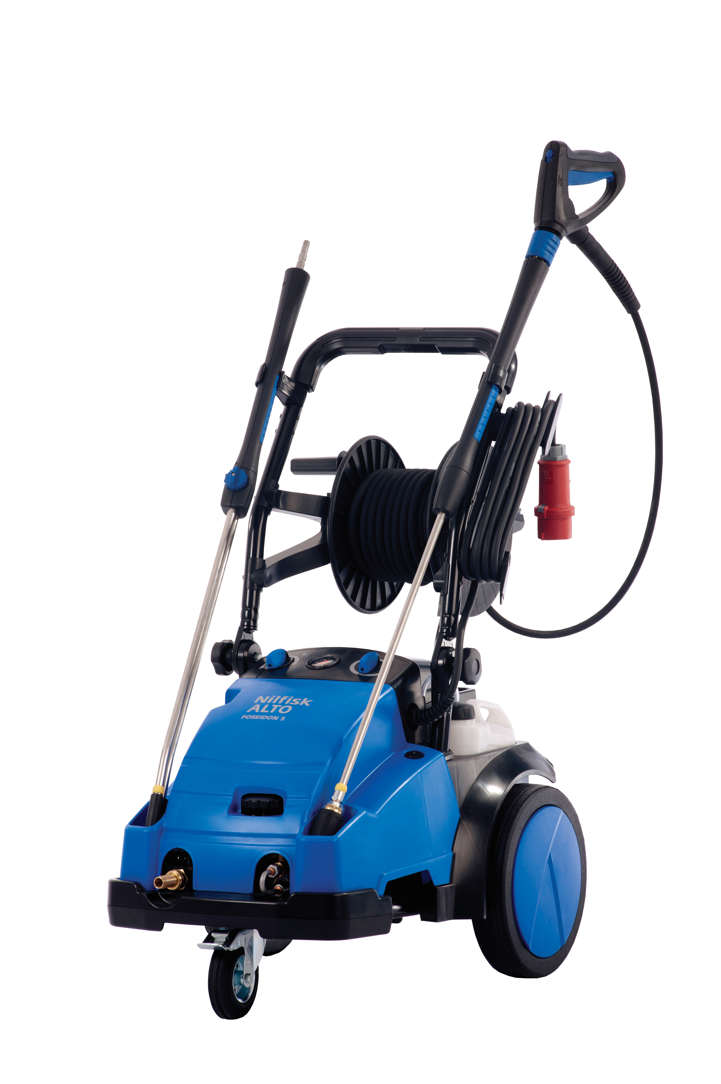 POSEIDON 4 ist die robuste und leistungsfähige Mittelklasse der Serie. Der starke Motor liefert 1.450 Umdrehungen pro Minute und steht für hohe Leistung und Lebensdauer. Zur Ausstattung zählen ein Reinigungsmitteltank, große Drehschalter und die Doppelstrahlrohrhalterung.