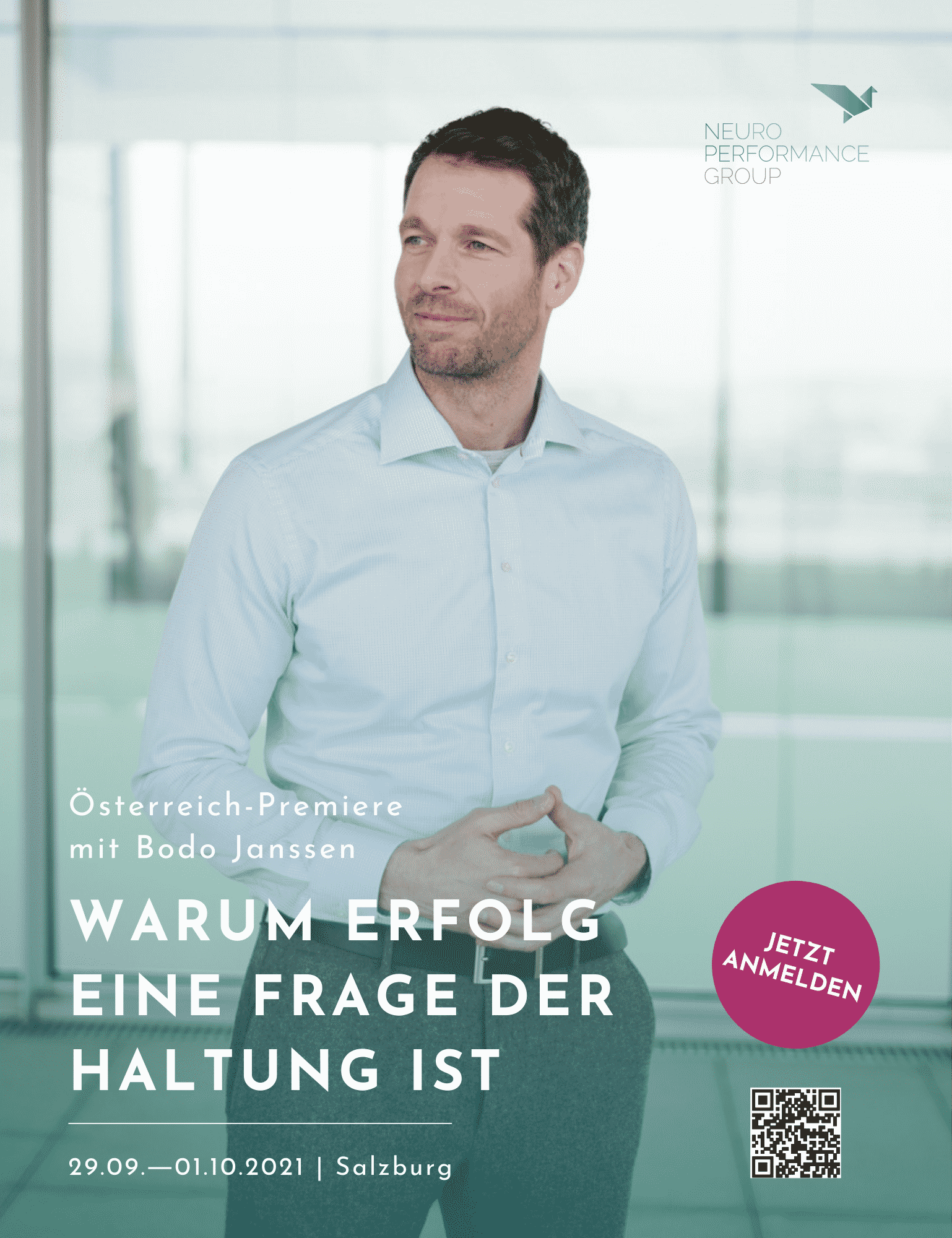 Am 29. September ist es endlich soweit: Der erfolgreiche Unternehmer und Bestsellerautor Bodo Janssen kommt erstmals nach Salzburg. Gemeinsam mit der NeuroPerformanceGroup (NPG), einem Salzburger Unternehmen für nachhaltige und innovative Entwicklung, veranstaltet er sein erstes Exklusiv-Seminar in Österreich. Das Hauptthema der Veranstaltung: Zufriedenheit und Erfolg im Unternehmen.