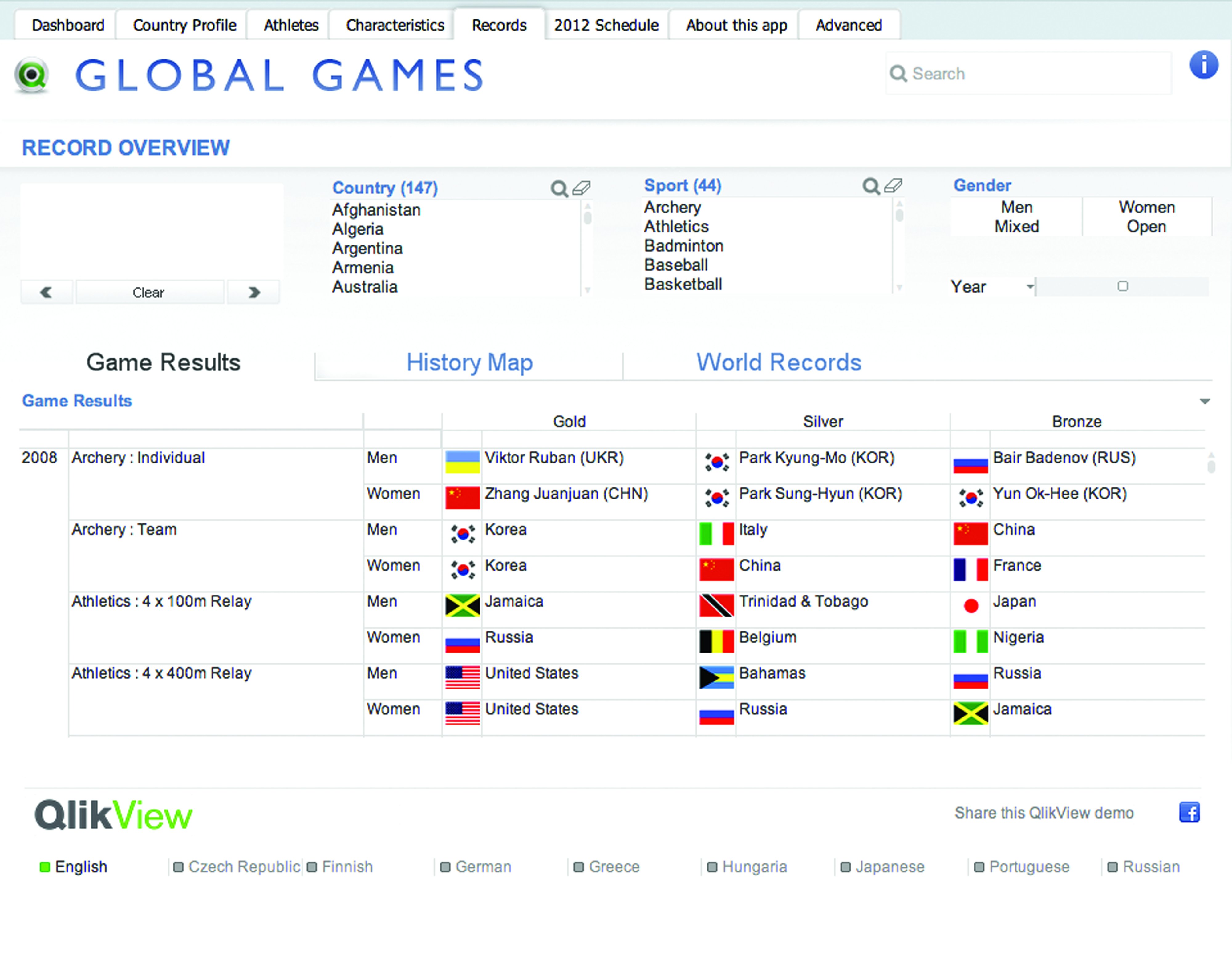 Damit weder Experten noch Laien auf der Wissens-Durst-Strecke bleiben, hat sich der Business Intelligence Anbieter QlikTech für die Olympischen Sommerspiele etwas ganz besonderes einfallen lassen: Die Global Games App. Mit nur wenigen Klicks lässt sich die sprichwörtliche Nadel im sportlichen Heuhaufen an Rekorden, Gewinnern, Verlierern, Medaillenspiegeln und mehr finden.