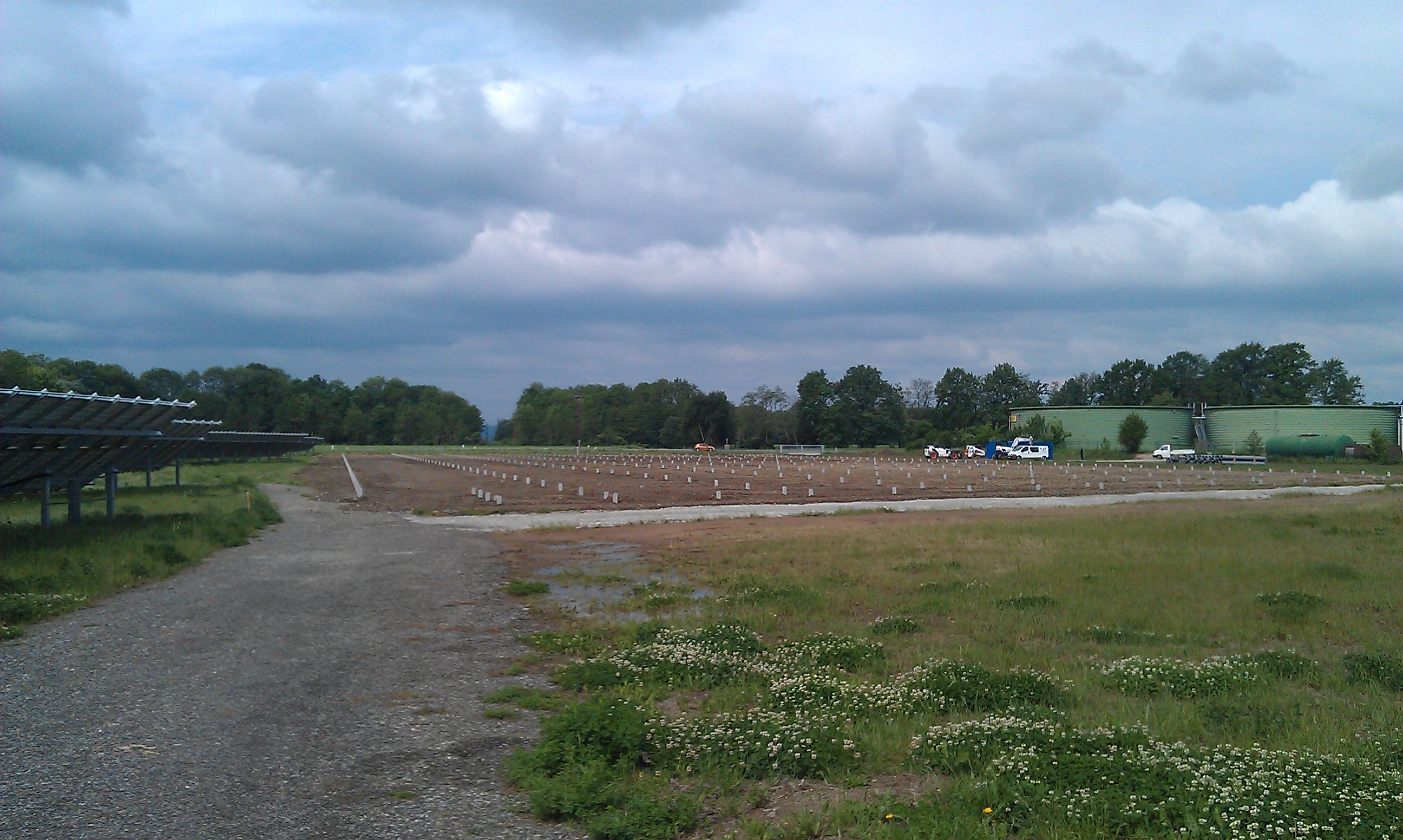 Nach der bereits im vergangenen Frühjahr in Betrieb gegangenen Freiflächenanlage (1.050 kWp) werden bei der 2. Ausbaustufe neue innovative Wege gegangen.