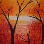 Gabriele SCHILLINGER präsentiert zwei Ölbilder mit reduzierten Ast- und Baumstrukturen im Vorder-und einem Teich im Hintergrund, Symbole für Nähe und Ferne, Polaritäten als Wegmarken zwischen Vertrautem und Unbekanntem.