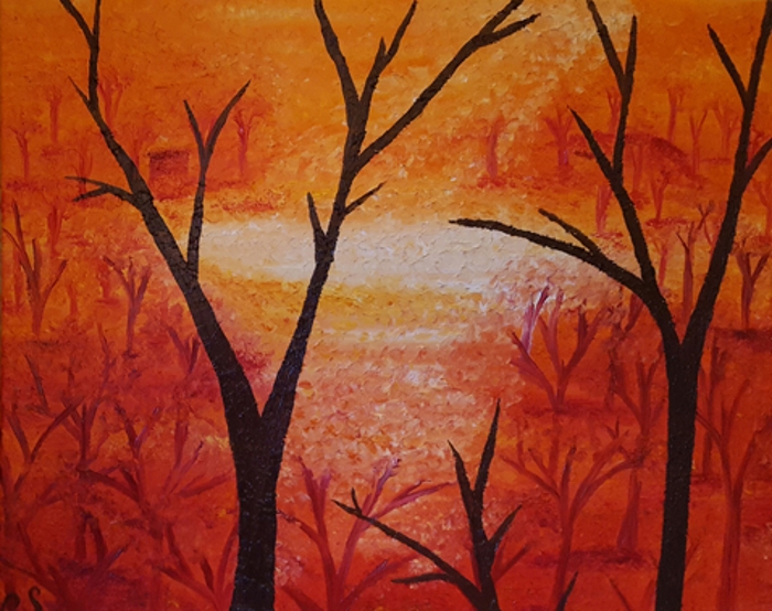Tschion E. SMOKE interpretiert in seinen in die Abstraktion driftenden surrealen Acrylbildern das Thema als Konflikt zwischen Künstler (Mensch)und Natur. Der Maler setzt die Natur in die Grenzen seiner eigenen Geschichte.Nur der Akt des Malens kann ihn befreien, ihn weniger präzise werden lassen und der Natur wieder näher bringen.
