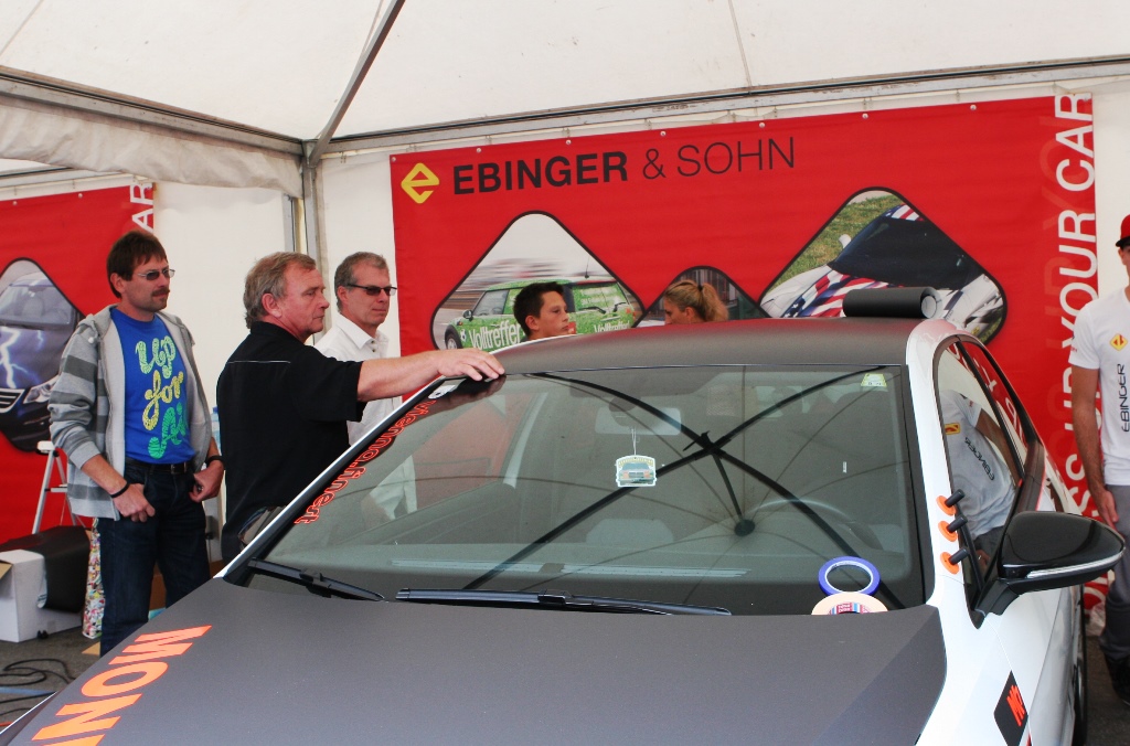 Am Sportwagentreffen konnte man live erleben wie Autos foliert werden. Jeder Besucher konnte zusehen, wie die Profis von Ebinger & Sohn bei der Beklebung arbeiten und Fragen stellen. Manch einer durfte sogar selbst Hand anlegen und probieren, wie man eine Folie aufkaschiert. Dies wurde begeistert angenommen und der Wissensdurst zahlreicher Besucher konnte gestillt werden.