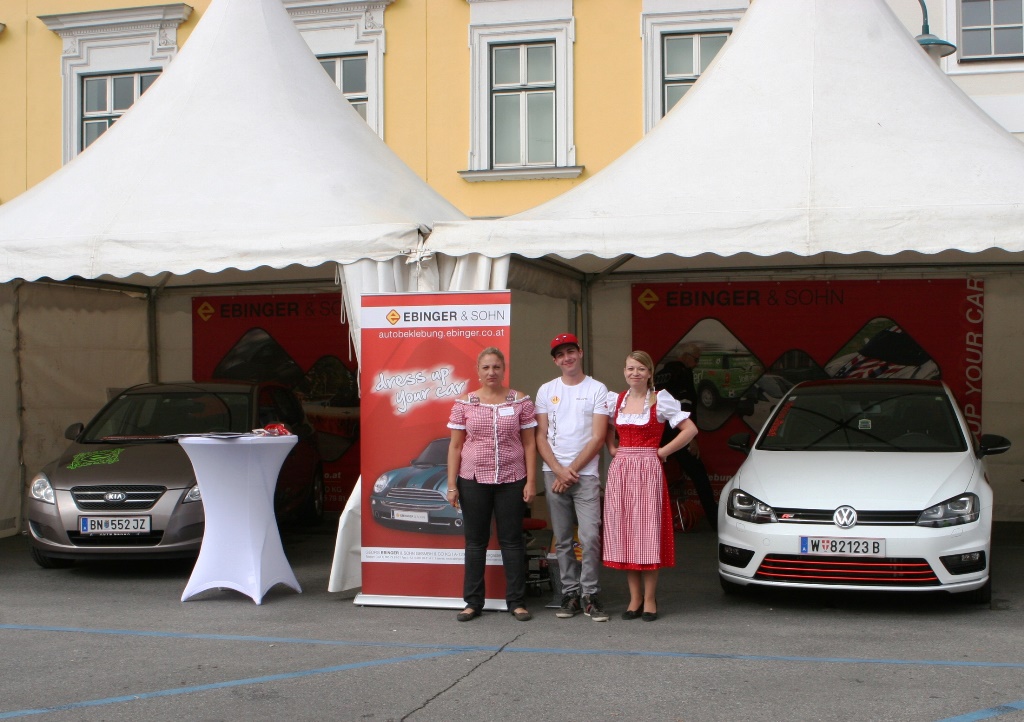 Das Unternehmen Ebinger & Sohn präsentierte am 31.08.2014 LIVE Autobeklebungen beim tollen Event des Sportwagentreffens. Dieser fand am Hauptplatz in Mistelbach statt. Angenehme Temperaturen, kein Regen und exklusive Fahrzeuge lockten viele Besucher an.