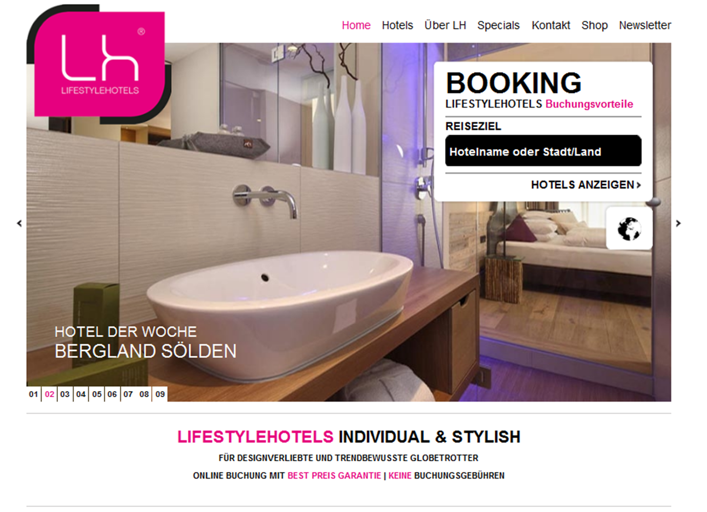 Neu, modern, ansprechend gestaltet und benutzerfreundlich: das sind die Merkmale, die die neue Website von LIFESTYLEHOTELS auszeichnen. Die auffälligsten optischen Änderungen sind das neue Design und die verbesserte Bilddarstellung. Größere Bilder sorgen für eine optische Reduktion des Gesamtauftritts und viel Eleganz. Besonders in der Hoteldetailansicht wurde Wert auf eine übersichtliche Darstellung des gesamten Hotels gelegt. Eine Google Map, detaillierte Beschreibungen und Tipps zum Hotel sowie ein integrierter Buchungsvorgang sind nun für User schnell und einfach zugänglich.