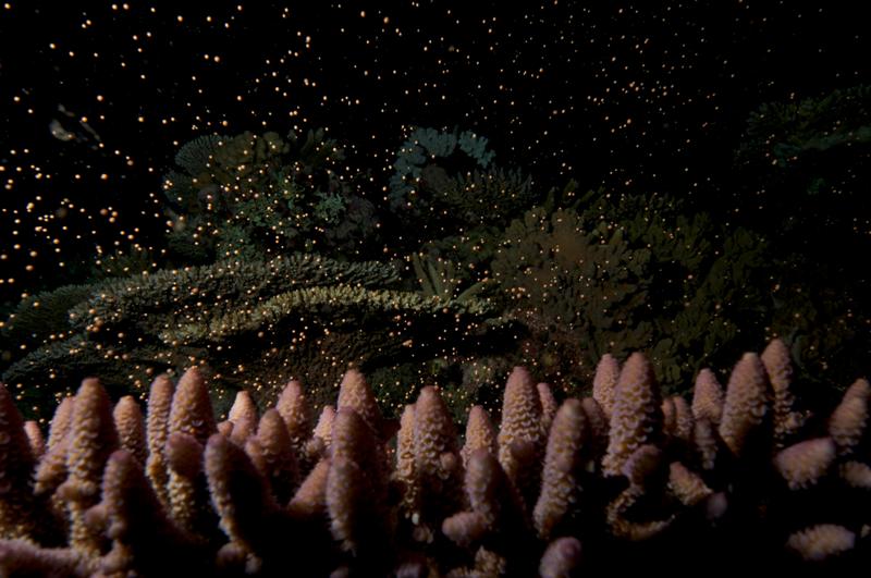 Das Coral Spawning wurde erst im Jahr 1981 von Biologen entdeckt. Dabei erforschte man, dass Korallen im Gegensatz zu den Pflanzen und Gräsern an Land, die ein paar Wochen für den Bestäubungsprozess benötigen, lediglich einmal im Jahr für ein paar Nächte Zeit für die Paarung haben. Das Absondern der Geschlechtszellen muss zum gleichen Zeitpunktstatt finden, da sonst die Meeresströmungen die einzelnen Gameten (zusammenfassende Bezeichnung für Eizellen und Samenzellen) zu sehr verstreuen und die Chancen einer Befruchtung somit enorm sinken würden. Findet das Spawning statt, werden so viele Gameten freigelassen, dass Taucher meist nicht weiter als einen Meter sehen können – es wirkt wie ein Schneesturm unter Wasser – und am nächsten Tag ein orangefarbener Teppich aus unbefruchteten Eiern an der Meeresoberfläche treibt.