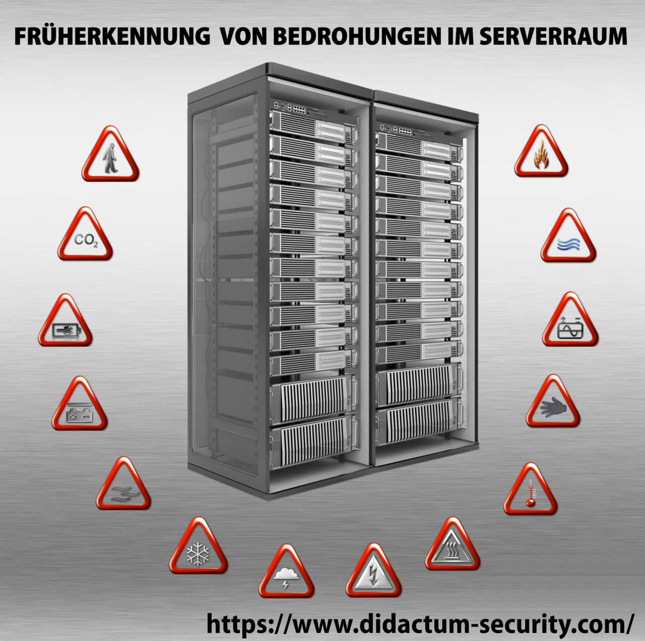 Vorhandene 19 Zoll Serverschränke müssen rund-um-die-Uhr überwacht werden. Im oftmals dicht gepackten Serverschrank können schnell kritische Temperaturen entstehen. Eine zu hohe Schranktemperatur kann die empfindlichen elektronischen Bauteile von Netzwerkswitchen, Backup-Systemen und Servern gefährden. Auch eine im 19 Zoll Serverschrank installierte USV Anlage kann bei einer dauerhaft zu hohen Temperatur Schaden nehmen. Im Serverschrank lauern noch weitere Risiken und Gefahren, die durch Installation eines geeigneten Serverschrank Überwachungssystems, neudeutsch Rack-Monitoring-System genannt, rechtzeitig entdeckt und gemeldet werden können.
