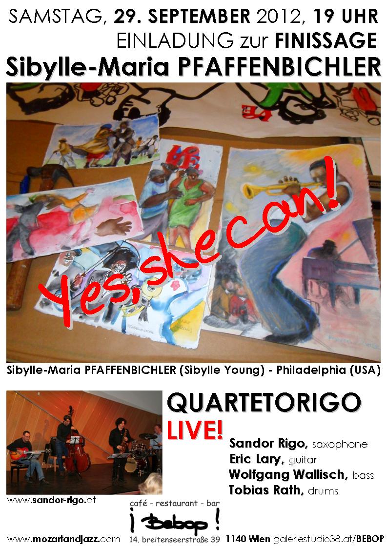 Am 29. September geht die vielbeachtete Einzelausstellung von Sibylle-Maria Pfaffenbichler im Breitenseer Szene-Lokal Bebop mit einem Auftritt von QUARTETORIGO zu Ende.