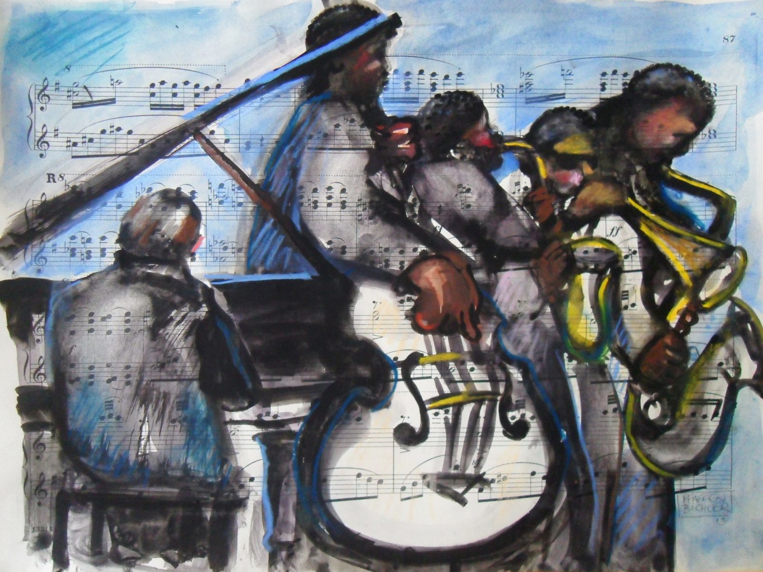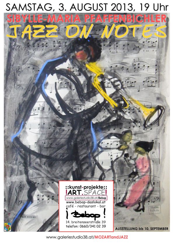Ab 3. August präsentiert der Verein kunst-projekte die neue Werkserie – Jazz-Musiker und Tänzer auf Notenblättern gemalt – der aus Österreich stammenden, in Philadelphia (USA) lebenden Künstlerin Sibylle-Maria Pfaffenbichler.