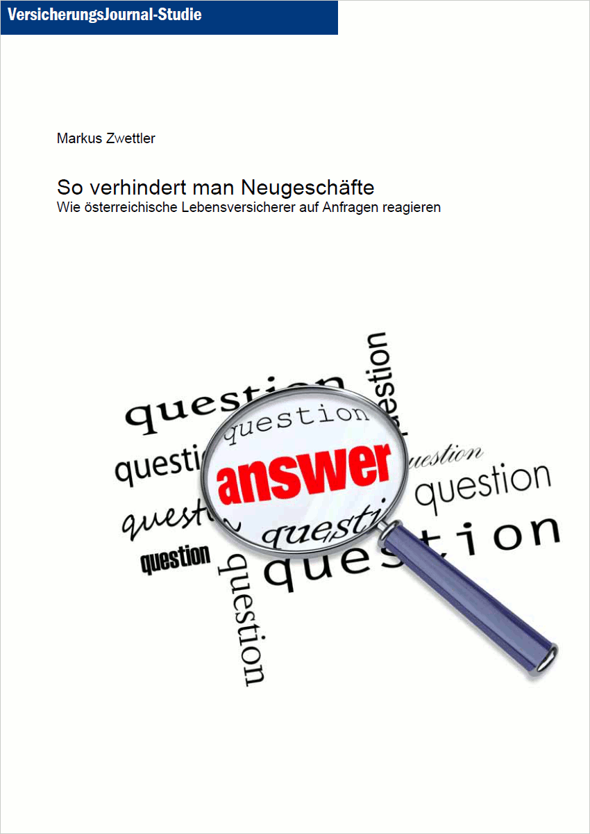 Die VersicherungsJournal-Studie „So verhindert man Neugeschäfte – wie österreichische Lebensversicherer auf Anfragen reagieren“, ISBN 978-3-938226-24-7, ist als E-Book für 125 Euro erhältlich und umfasst 51 Seiten im Format A4.
