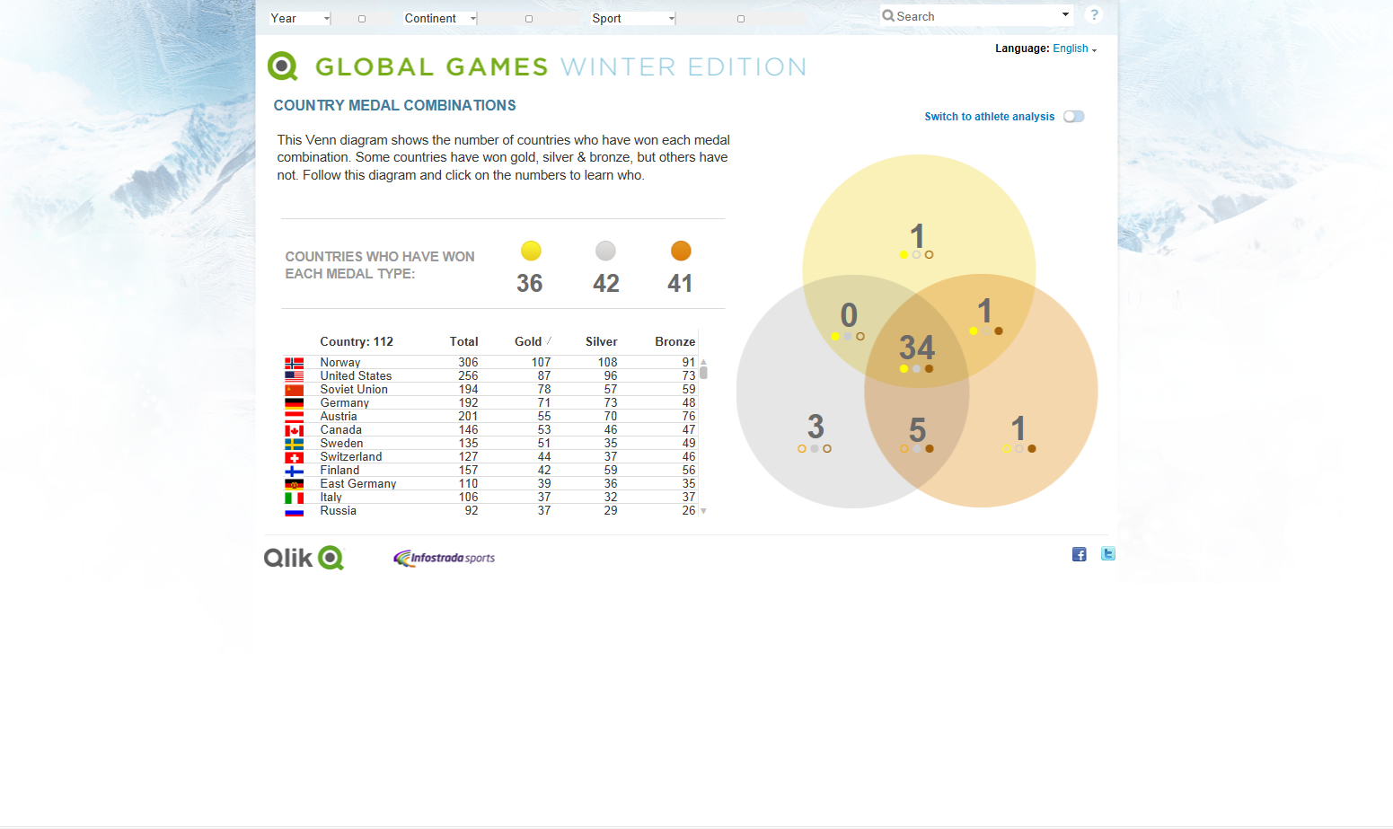 Basierend auf der eigenen Business-Discovery-Plattform QlikView kann der Fan von harten Fakten bis spannenden Trivia alles zu den Spielen erfahren. Die kostenlose QlikView App macht es einfach, die Vielzahl an Daten auszuwerten. Sie basiert auf Daten seit 1908 bis 2010 von Infostradasports. Während der Winterspiele werden täglich um 13 Uhr GMT die aktuellen Medaillengewinner eingepflegt und die App aktualisiert. Mit nur wenigen Klicks lässt sich intuitiv die sprichwörtliche Nadel im sportlichen Heuhaufen an Rekorden, Gewinnern, Verlierern, Medaillenspiegeln und mehr finden.