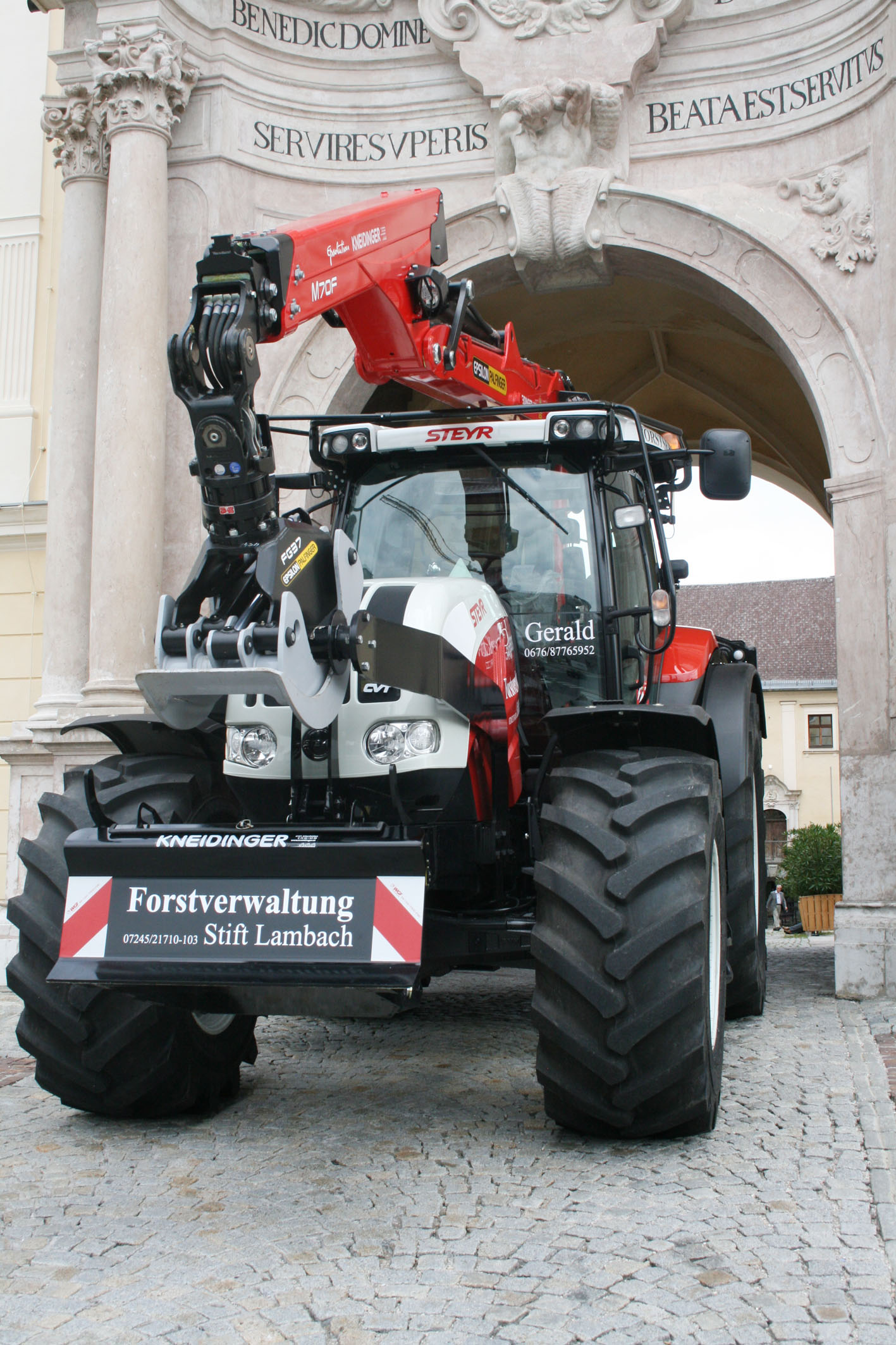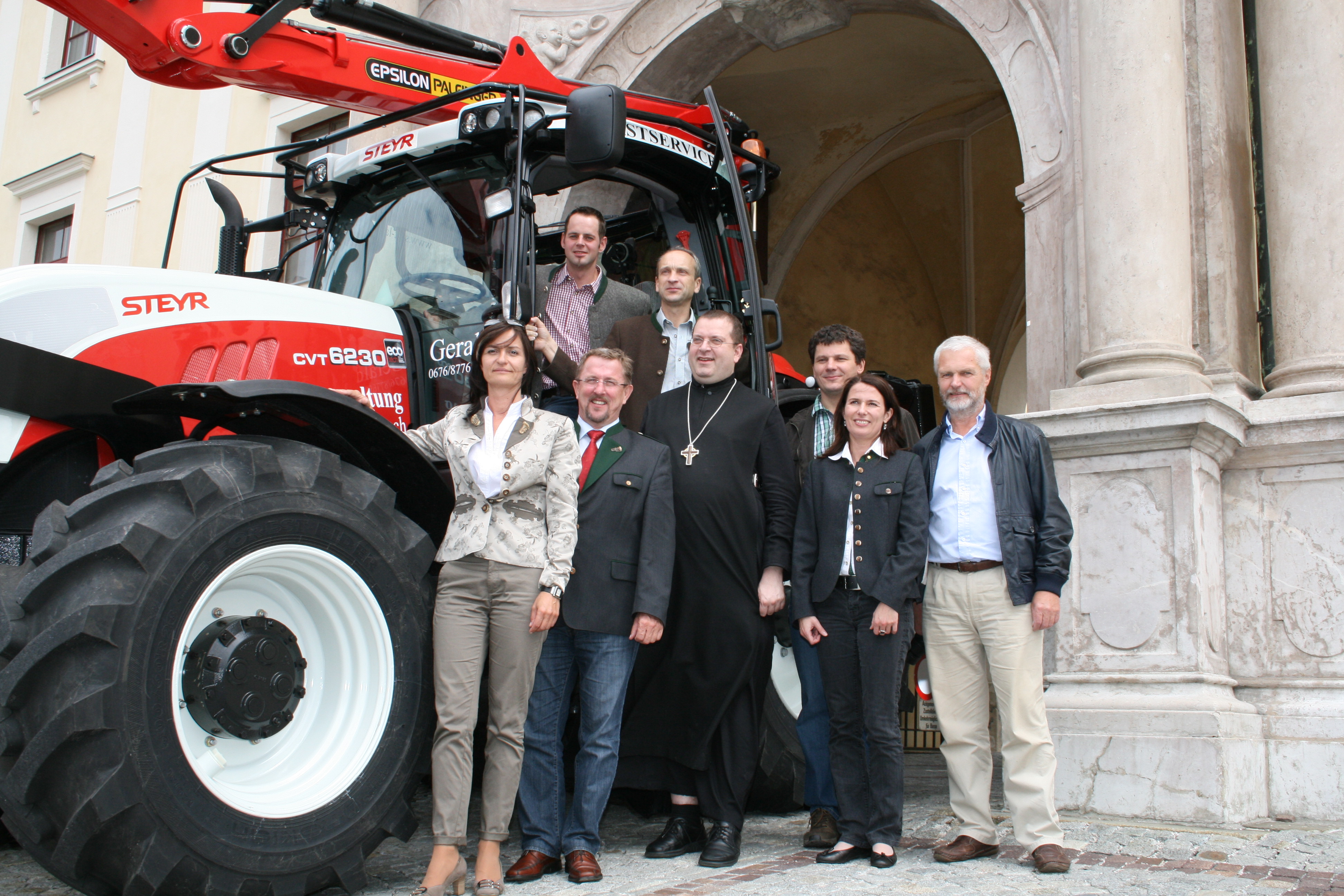 Zur feierlichen Segnung des Traktors durch Abt Maximilian Neulinger waren Festgäste und die Forst-Mitarbeiter des Stiftes gekommen. Auch der frühere Abt Gotthard Schafelner, er stammt aus St. Valentin, der Heimat der Steyr Traktoren, wohnte dem Festakt bei. Steyr war durch Marketingleiterin Maria Sauer, Forst- und Kommunal-Österreich-Verkaufsleiter August Schönhuber, DI Kurt Kneidinger und Martin Kainberger von Kneidinger Landtechnik sowie Helga Neundlinger von Söllinger Landtechnik vertreten.