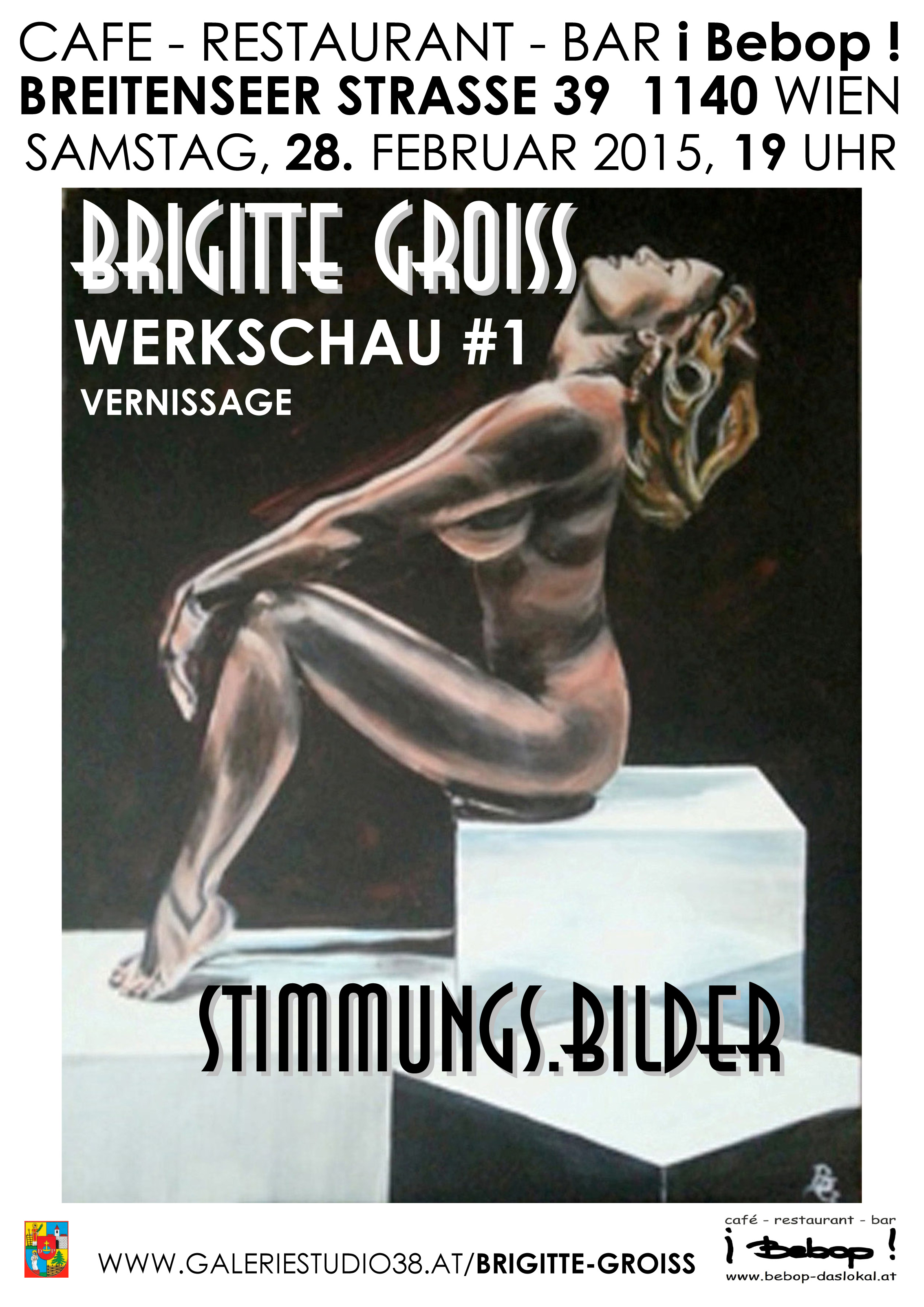 Samstag, 28. Februar 2015, 19 Uhr AUSSTELLUNGSERÖFFNUNG WERKSCHAU #1 STIMMUNGS.BILDER Brigitte GROISS CAFÉ - RESTAURANT - BAR ¡ BEBOP ! Breitenseer Straße 39 1140 Wien Ausstellung bis Anfang April 2015