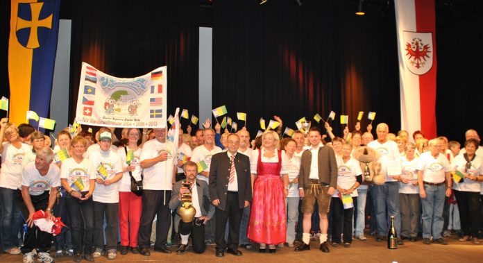 Unter großem Applaus übergab das Organisationsteam aus dem PillerseeTal die offizielle WM-Fahne an die Vertreter des Naturpark Zirbitzkogel-Grebenzen, wo die 12. IVV Wander-Weltmeisterschaft im kommenden Jahr stattfindet.