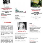 Andrea Pesata hat deshalb „Synergien“ bewusst als Titel für ihre Ausstellung gewählt, fügen sich doch ihre Gemälde und Assemblagen aus den verschiedensten Materialien und Stilrichtungen ebenfalls zu einem Ganzen zusammen. Viel mehr noch – durch ihr Spiel mit dem Zusammenwirken von lassen und zulassen und der Akzeptanz, ein Ineinandergreifen als solches zu tolerieren, ist aus ihrer Arbeit längst eine eigene Stilrichtung geworden.