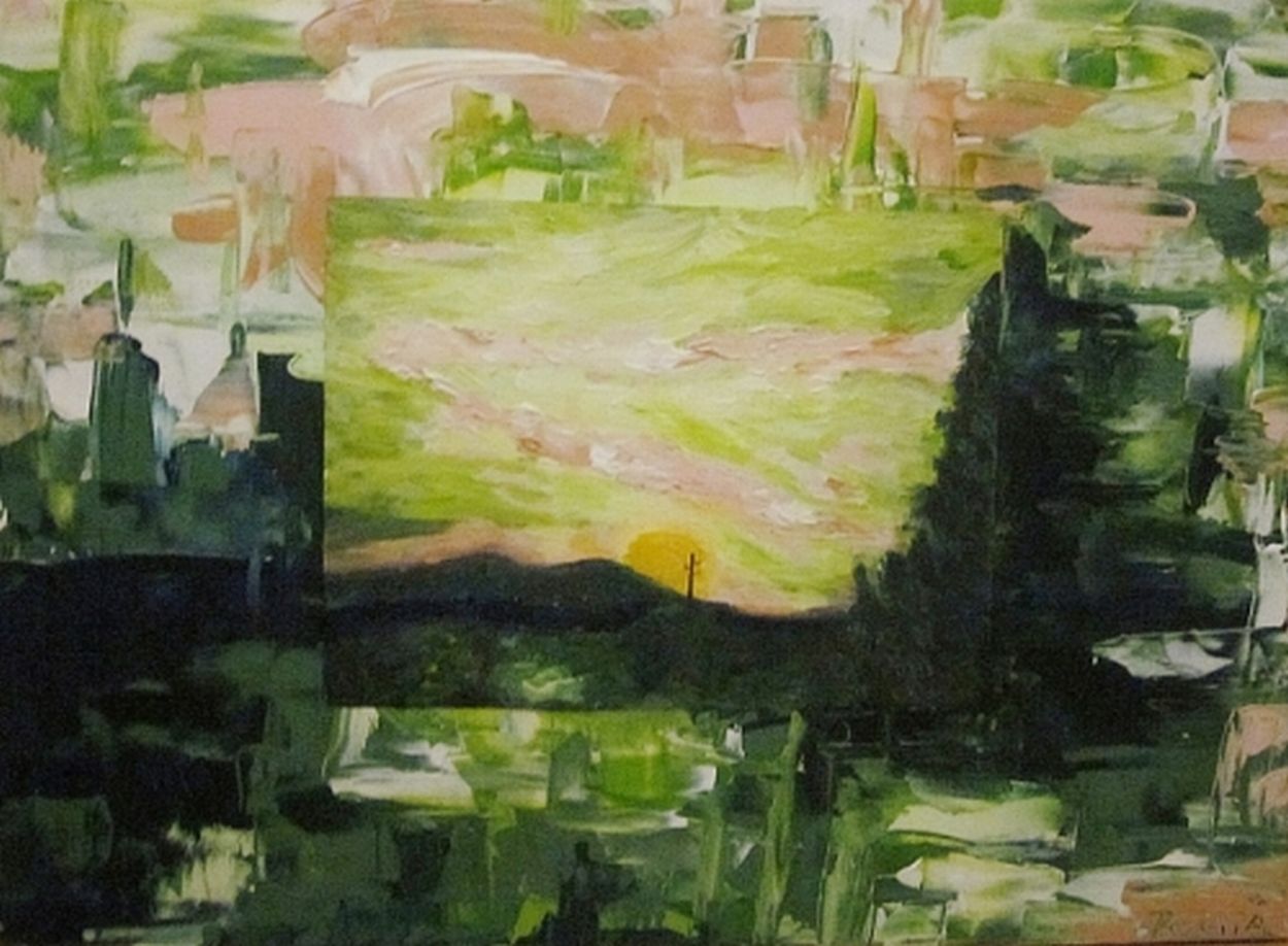 In den Landschaftsmalereien verarbeitet Andrea Pesata kreative Eindrücke aus früheren Aufenthalten im Waldviertel sowie in Südtirol und in Dalmatien. Es sind Momentaufnahmen, gemalte „Schnappschüsse“, die sie nicht in Rahmen zwängt wie eine Fotografie. Die Leinwand wird zu ihrer Umrahmung, schafft Raum für Interpretation und für den Wechsel von Gegenständlichkeit und Abstraktion.