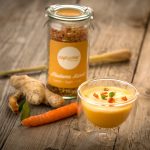 Diese Karotten-Ingwer-Mischung hat es in sich. Nicht nur der gute Geschmack zeichnet sie aus. cup4me® Madame Karott – der Booster für Immunsystem und Verdauung. Unter dem Motto: gesunde Knollen mit großem Geschmack. Ob Madame Karott auch aphrodisierende Wirkung hat? Keine Ahnung – da aber Ingwer darin enthalten ist, kann das ja sehr gut sein.