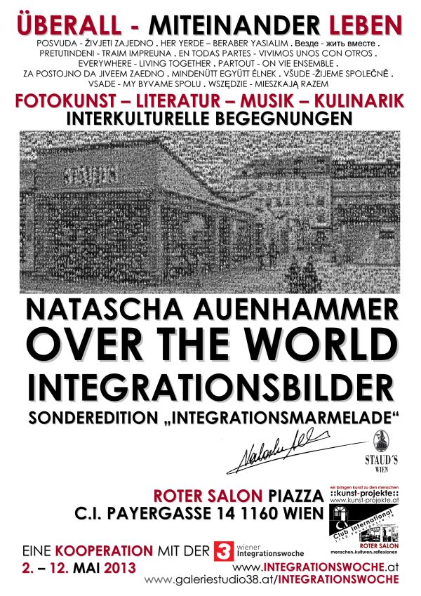 Das Projekt „over the world – miteinander leben“ von Natascha Auenhammer befasst sich mit dem immer aktuellen Thema der Integration. Es ist dies eine Foto-Porträtserie von Menschen, die, aus aller Welt kommend, jetzt in Wien leben. Die „Conclusio“ daraus sind sogenannte „Integrations-Bilder“, die bekannte Wien-Ansichten, aber auch Ansichten vom Brunnenmarkt zeigen, in denen sämtliche Porträts integriert sind. Die unterschiedlichsten Nationalitäten, Kulturen und Religionen werden in einer Symbiose mit dem urbanen Hintergrund der Stadt Wien gezeigt. Mit dem Bildmotiv „Yppenplatz, Staud’s“ wird das Etikett der Sonderedition „Integrationsmarmelade“ gestaltet.