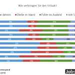 Offensichtliche Ausnahmen sind Irland und Polen, wo überdurchschnittlich viele Arbeitnehmer ihren Urlaub in den eigenen vier Wänden verbringen und gar nicht in den Urlaub fahren (Irland 52 Prozent, Polen 49 Prozent). Außerdem fällt auf, dass die Rumänen beim Urlaub durchaus Lokalpatriotismus beweisen – daheim und im Inland bleiben 78 Prozent der Umfrageteilnehmer, denen nur 13 Prozent Auslandsurlauber gegenüberstehen. Ungarn weist die höchste Anzahl derer auf, die überhaupt keinen Urlaub machen – rund 33 Prozent der Arbeitnehmer. Am anderen Ende der Skala befinden sich die Iren – von den Bewohnern der grünen Insel entscheiden sich nur 4 Prozent gegen einen Urlaub.