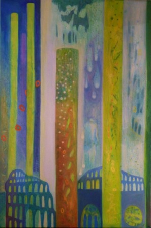 Wie sich Architektur und Zusammenleben zu einem harmonischen Organismus zusammenfügen könnten, aber auch die „Un-Orte"ohne menschliche Interaktion sind Inhalt ihrer bildnerischen Werke.