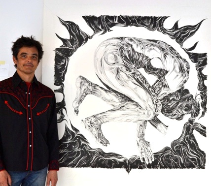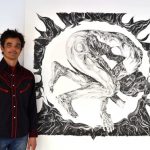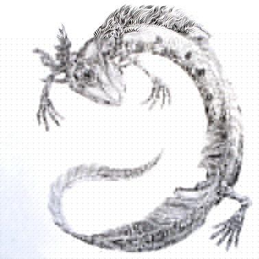 Die monochromen Tuschemalereien auf Untergründen wie handgeschöpftes Papier, Leder, Rinde, Pergament etc. verbinden asemische Kalligraphie mit graphischen Elementen: darauf sind Motive von Tieren, Dämonen oder Figuren aus der griechischen Mythologie zu sehen. Jedes Bild entstand in einem stundenlangen meditativen Prozess in Live-Malerei-Sitzungen an einer Vielzahl von Standorten rund um den Erdball.