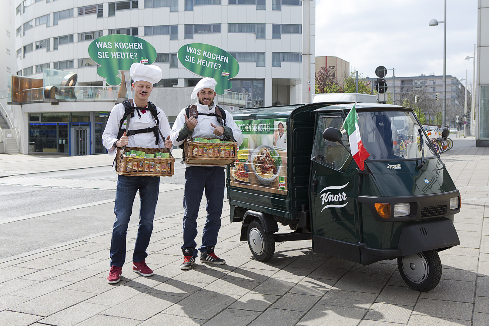 Bella Italia trifft auf Wiener Charme. Diese und nächste Woche sind in ganz Wien KNORR Promotoren im Italian-Style anzutreffen, die die neuen KNORR Basis Spaghetti Bolognese – typisch italienisch Produkte für den Genuss zu Hause an Passanten verteilen. Als Hingucker fungiert dabei eine Ape Piaggio,ein Kleintransporter, der auch typisch italienisch ist. „Die Italiener beweisen auf kulinarischer Ebene immer wieder hervorragenden Geschmack. KNORR bringt den südlichen Genuss jetzt auf kreative Art und Weise nach Österreich“, freut sich MMag. Andreas Breitegger, Brand Manager von KNORR, sowohl über die neuen Produkte als auch über die Sampling-Aktion.