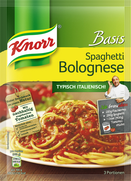 Mit dem neusten KNORR Produkt Basis Spaghetti Bolognese – typisch italienisch schmecken Nudelgerichte wie beim Lieblingsitaliener. Inspiriert vom italienischen KNORR Chefkoch Luigi verwandelt jeder Hobbykoch seine Küche undsein Esszimmer in ein echtes Ristorante Italiano. Nachhaltig angebaute Tomaten sowie Zwiebel und Gewürze nach Originalrezept sind bereits in der Packung enthalten– hinzugefügt werden bei der Zubereitung Faschiertes, eine Dose Tomatenstücke und Spaghetti. Der perfekten Mahlzeit mit extra frischen Zutaten steht nichts mehr im Weg.