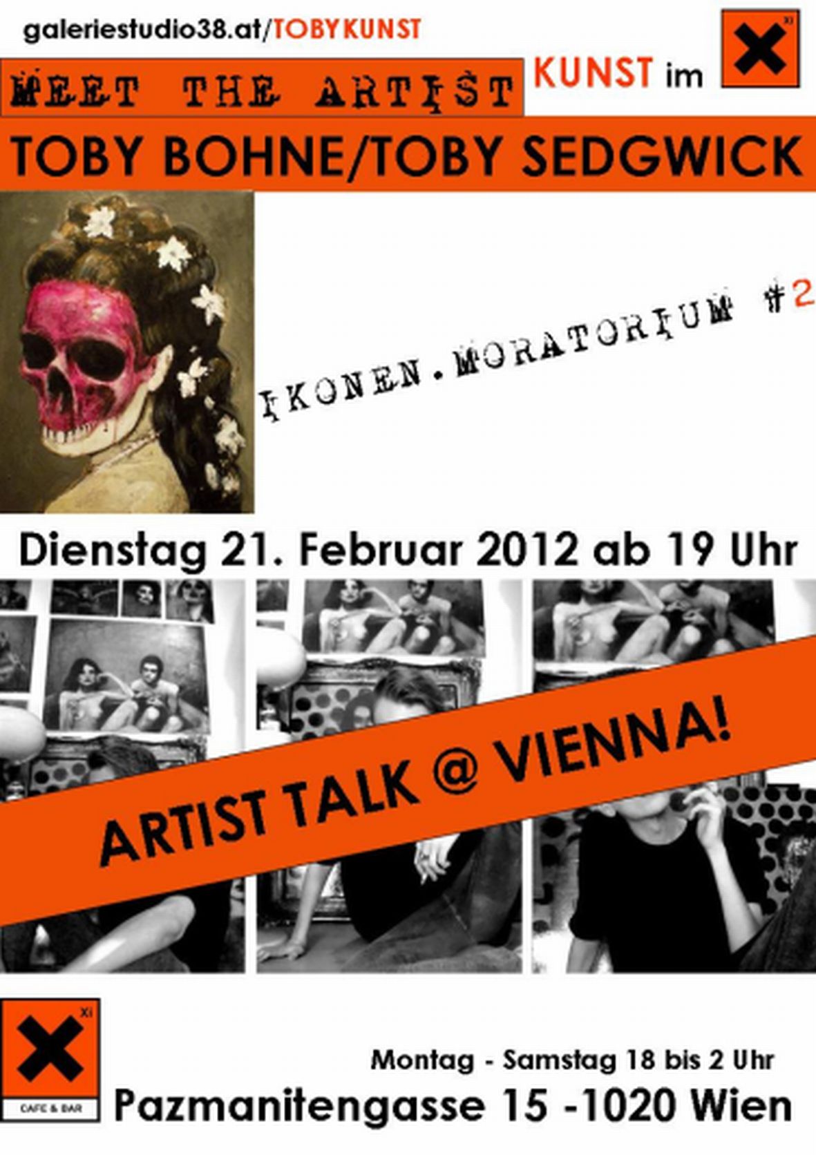 Der junge Bochumer Künstler Toby Bohne zeigt seit Ende 2011 sein „IKONEN.MORATORIUM“. Porträts der Stars aus dem Umfeld von Andy Warhols „Factory“ werden den Stars von heute gegenübergestellt. Aufgrund des außergewöhnlichen Erfolges wurde die Ausstellung verlängert und ist – ergänzt durch neue Arbeiten – bis Anfang März 2012 unter dem Titel „IKONEN.MORATORIUM #2“ im Leopoldstädter Szenelokal Xi zu sehen. Am 21. Februar ist Toby Bohne beim Künstlergespräch in Wien persönlich anwesend!