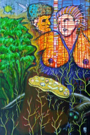 In seiner Ausstellung „PARA !?! DIESE“, die am 26.April in der ehemaligen Zuckerlfabrik eröffnet wird und ab 1. Mai in das Szenelokal i Bebop I übersiedelt, stellt W. Otto GEBERZAHN in verschiedenen Bildsprachen den Paradiesbegriff in Frage.