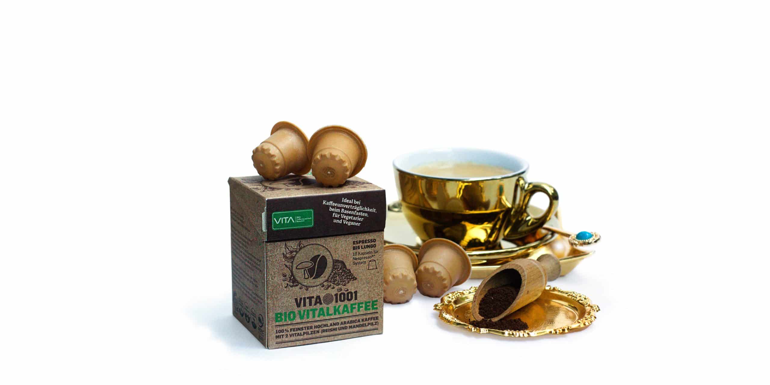 VITA1001 – Bio-Vitalkaffee in einer zu 100% kompostierbaren Holzfaser-Espresso-Kapsel (Nespresso kompatibel) verfügbar