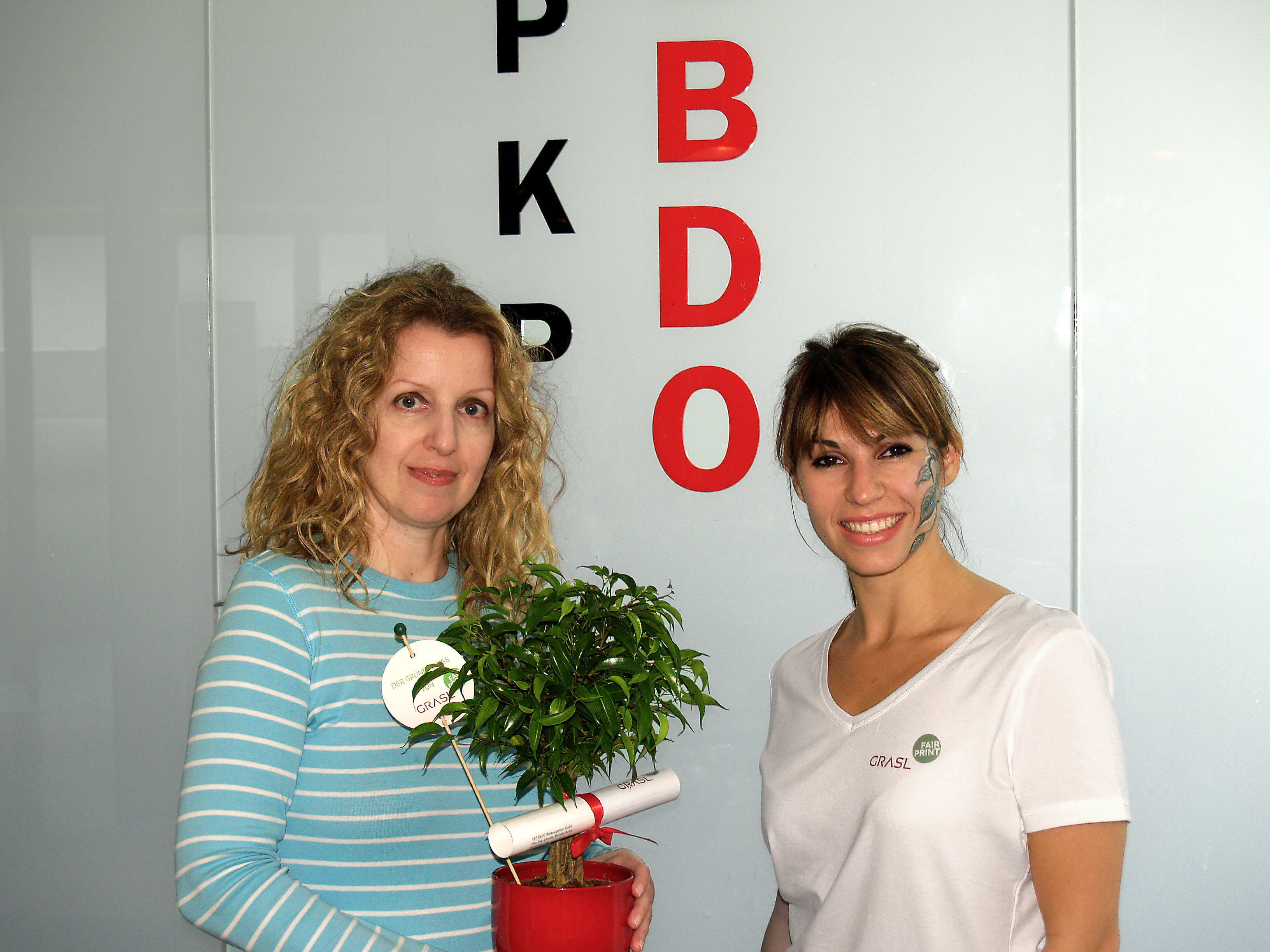 Ausgewählte Agenturen in Wien und Niederösterreich wurden in den vergangenen Sommerwochen von Grasl FairPrint besonders angenehm überrascht. Mit einem „GRÜNEN GRUSS“ - in Form eines Ficus Babilatos – bereiteten Mitarbeiter von Grasl FairPrint persönlich Freude und verschönerten den Agenturen den Arbeitstag.