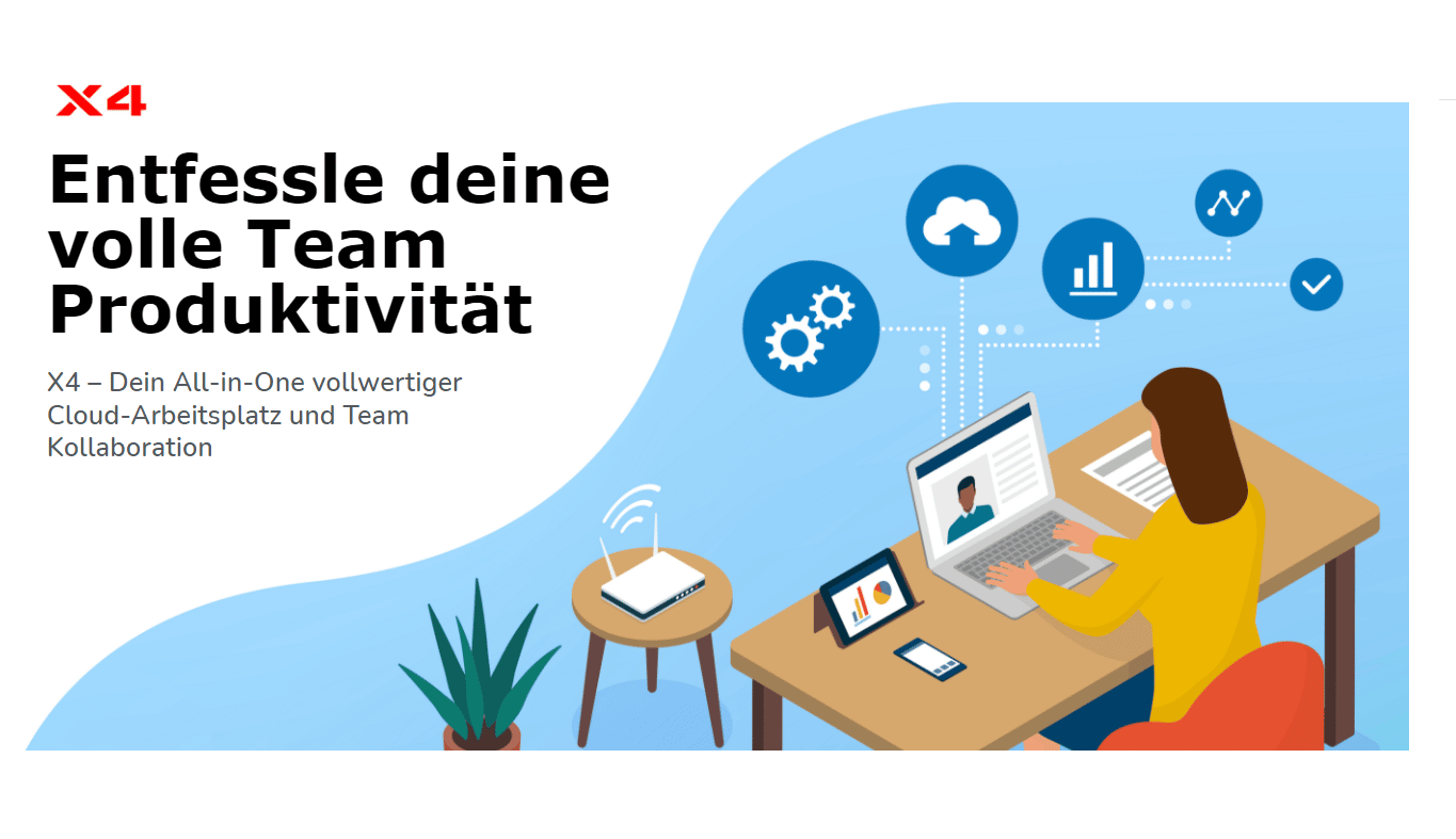 In den Funktionsumfang inkludiert sind zwei Web- und Video-Conferencing-Tools: Mit X4Meet können Nutzer Sofortbesprechungen führen und via Screen-Sharing und Whiteboard gemeinsam interaktiv zusammenarbeiten. Ergänzend können große Gruppen mit bis zu 1000 Teilnehmern mit X4Class Schulungen, Workshops und Events abhalten. Neben des multiplen Email-Clients, verfügt X4 über eine Chat-Funktion, die ebenfalls als Applikation auf dem Smartphone installiert und sicherer Datenaustausch zugesichert werden kann. Mit dem eigenen Office lassen sich Dokumente, Tabellen, Präsentationen und Diagramme erstellen, teilen und direkt in der Cloud abspeichern. Nutzer können eine Vielzahl nützlicher Apps direkt im App-Center abrufen, sodass eine Anpassung an jegliche Kundenbedürfnisse stattfinden kann.
